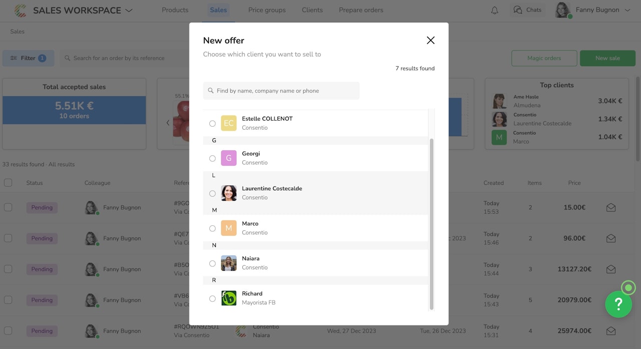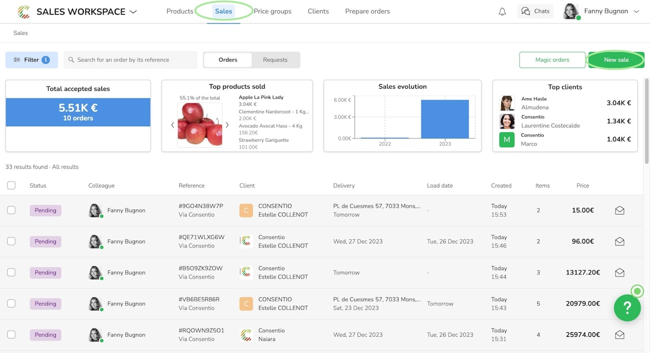 From Consentio, your client can send you orders. You can also push your clients some orders, both ways are possible.
