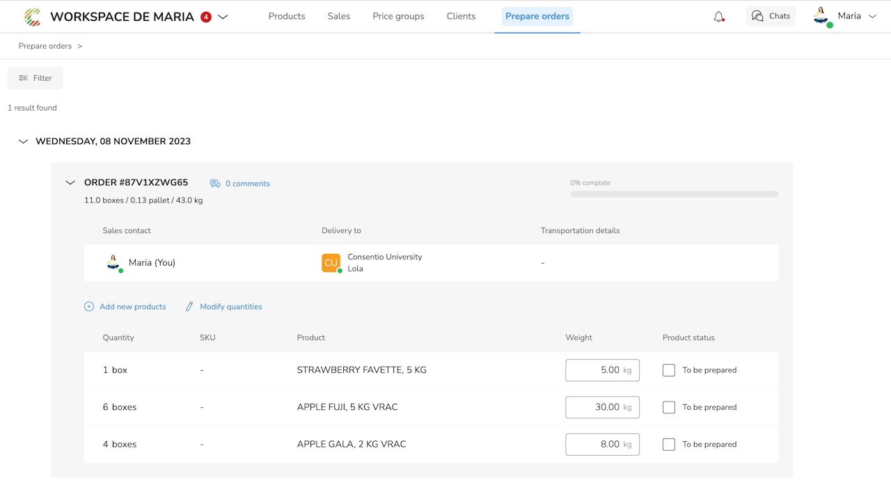 This feature will be useful if the warehouse or order preparation staff also works with Consentio.