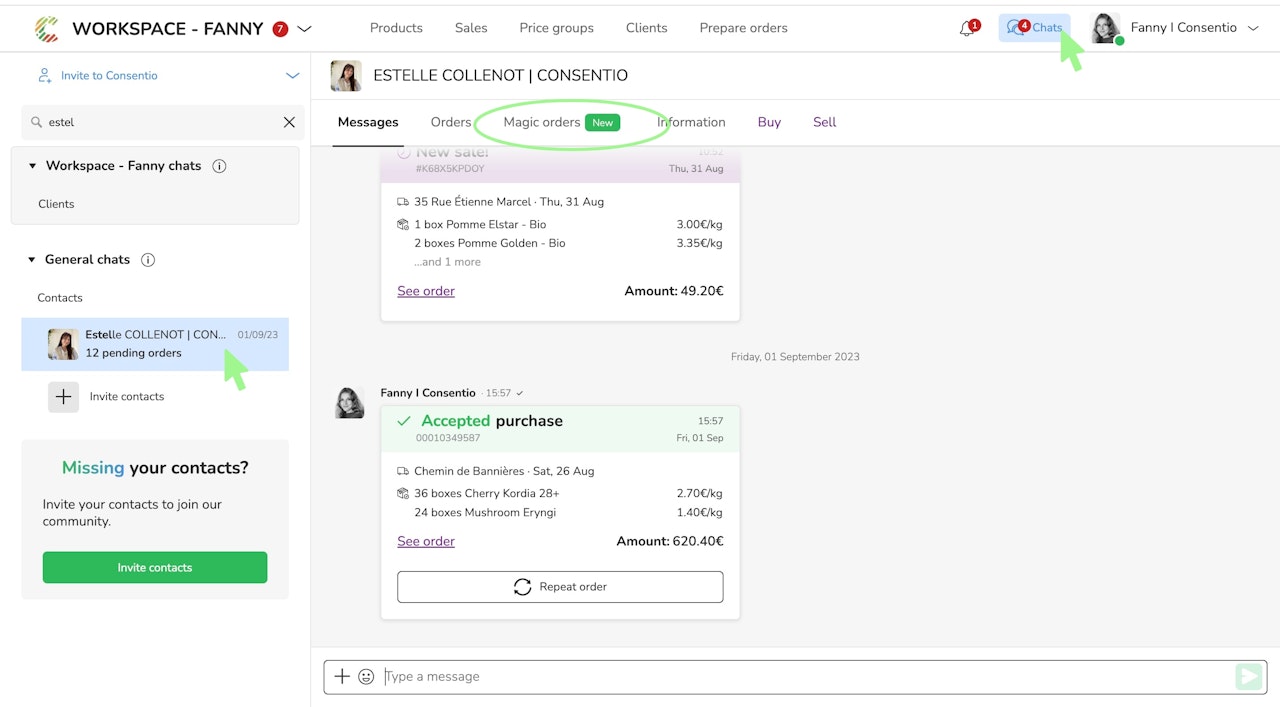 In the chats with your client, our buy-sell group select the button Magic Order.