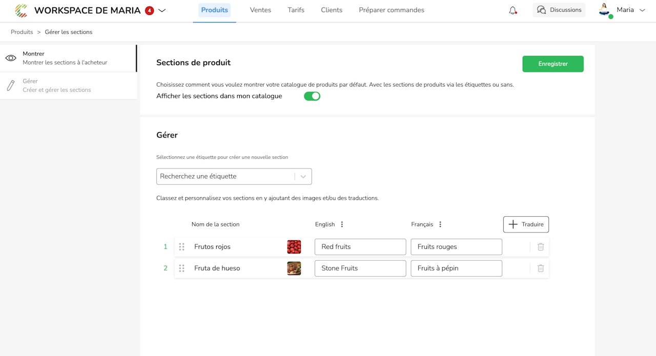 La création de sections dans votre catalogue peut vous aider à organiser les produits, et peut améliorer l'affichage et l'accès à votre catalogue. Vos clients apprécieront la facilité avec laquelle ils peuvent s'y retrouver !