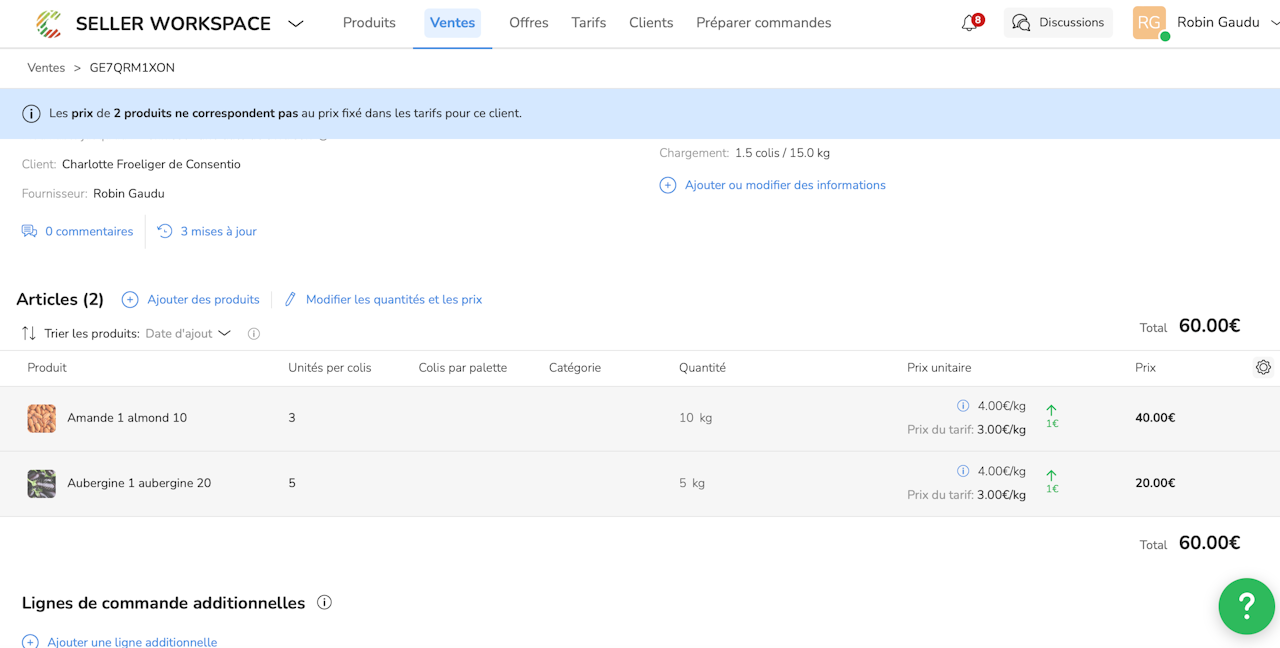 Elle vous indique via une alerte une différence de prix entre le prix indiqué sur le votre tarif d'un client et le prix indiqué dans la commande.