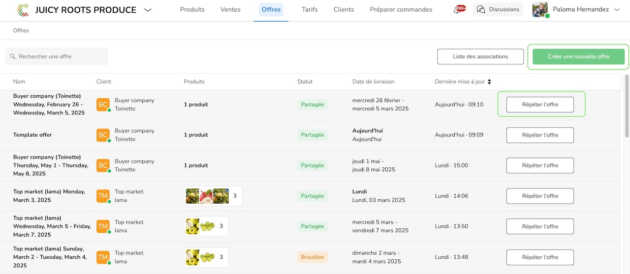 Cliquez ensuite sur le bouton vert Nouvelle Offre.