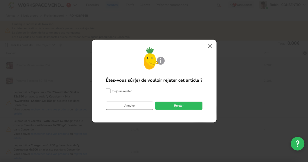 Le rejet de produit définitif sur Consentio lors de l'importation d'une commande Magic Orders, offre une solution efficace pour gérer les produits non désirés dans vos commandes de façon récurrente.