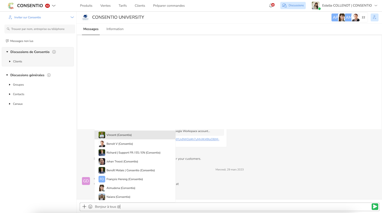 Vous désirez mentionner un membre du groupe dans vos discussions ?