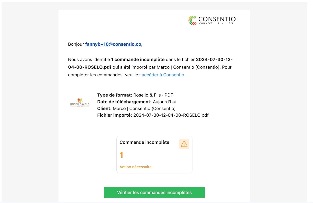 Pourtant, Consentio peut aller plus loin et vous avertir que vos commandes reçues par email n’ont pas été finalisées pour que vous ne les manquiez pas !