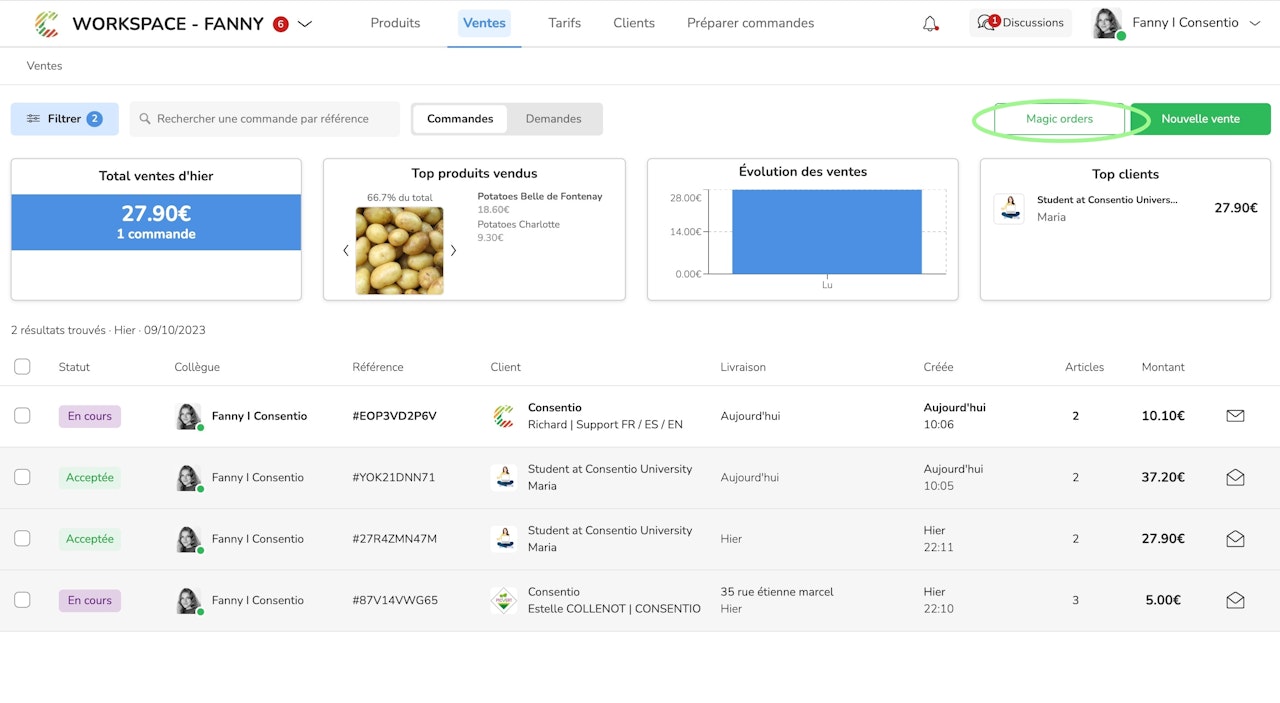 1. Directement depuis votre onglet de ventes, sélectionnez le bouton Magic Orders.