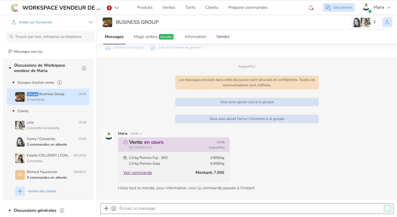 Les groupes d'achat-vente ont été créés pour centraliser toutes vos ventes, mais aussi pour que les conversations avec un client soient vues par toute votre équipe !