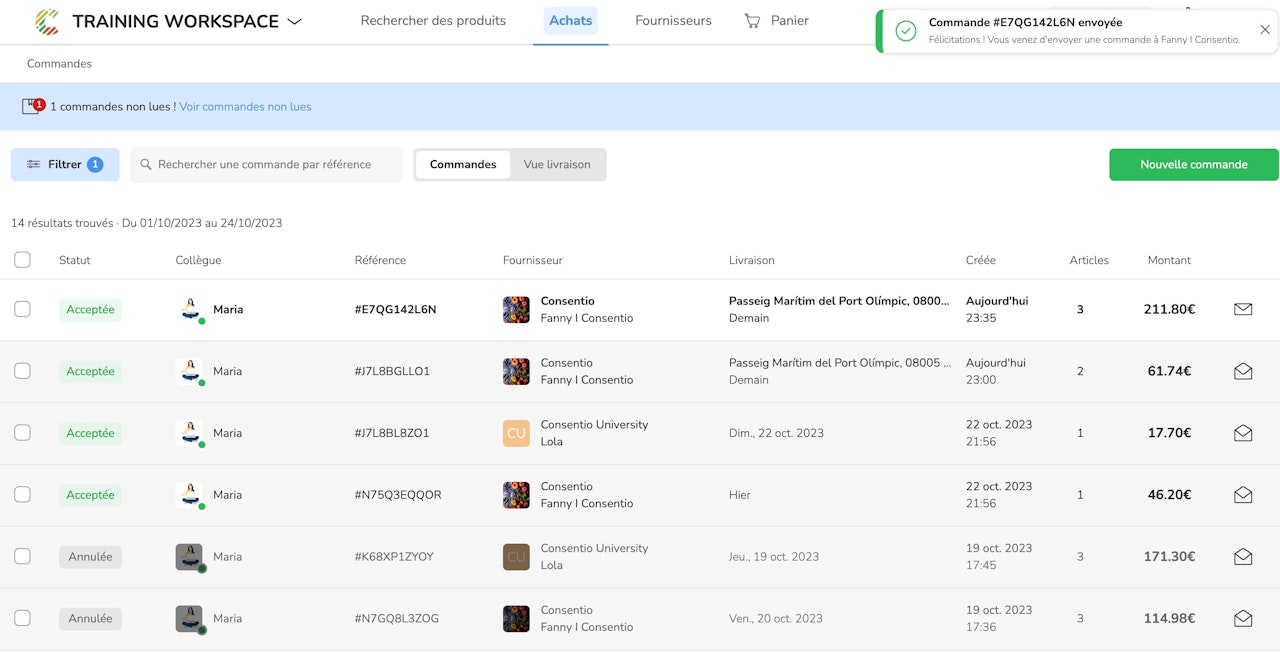 La section Achats rassemble toutes les informations sur les achats effectués par votre équipe, vous offrant une vue claire de votre activité.